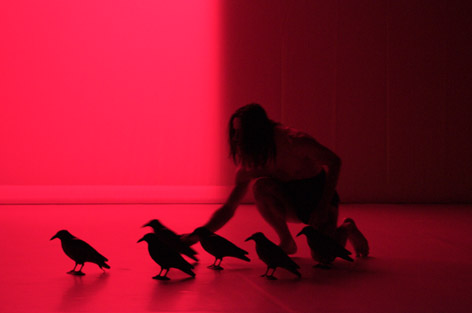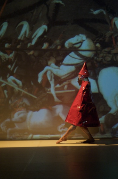 Bien sûr, la danse a dû être élaborée de façon spécifique grâce à un travail sur les qualités de mouvement, l’écriture dans l’espace, l’intention, etc…   Mais ensuite ce sont les exigences dramaturgiques qui ont guidé les choix esthétiques de la pièce.  J’avais le désir en premier lieu d’expérimenter un tissage étroit de différents langages, et deuxièmement de travailler aux confins de l’abstraction et de la figuration.
